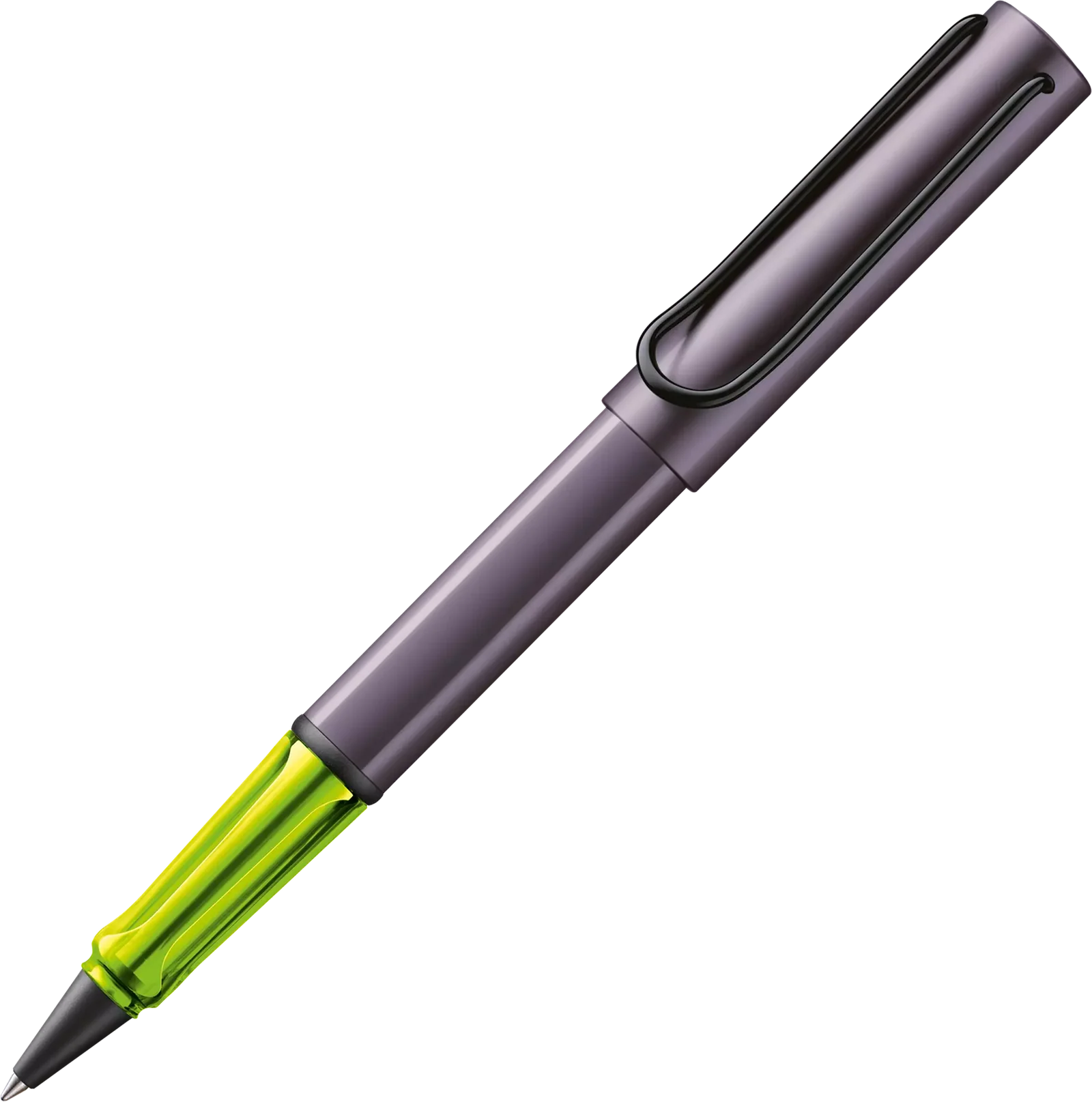 Lightweight rollerball pen with ergonomic grip made of high-quality transparent plastic. Distinctive metal clip and resistant body made of anodised aluminium. Including rollerball pen refill LAMY M 63 in size M in black.