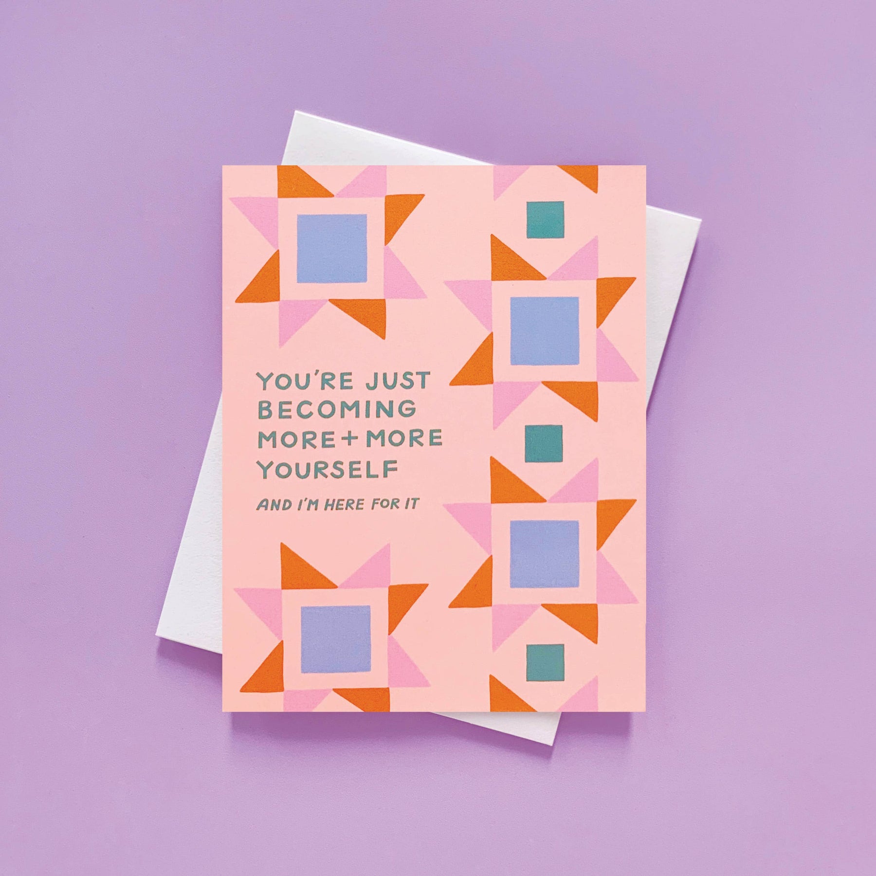 Digitally printed, A2 size card (4.25" x 5.5"), matching envelope included. Each card is blank inside and comes in a protective cello sleeve.